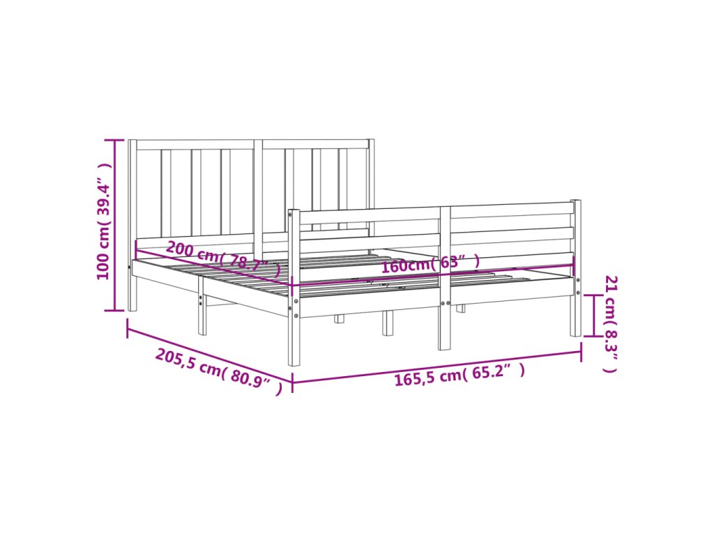 - Celkové rozměry postele: 205,5 x 165,5 x 100 cm (D x Š x V)