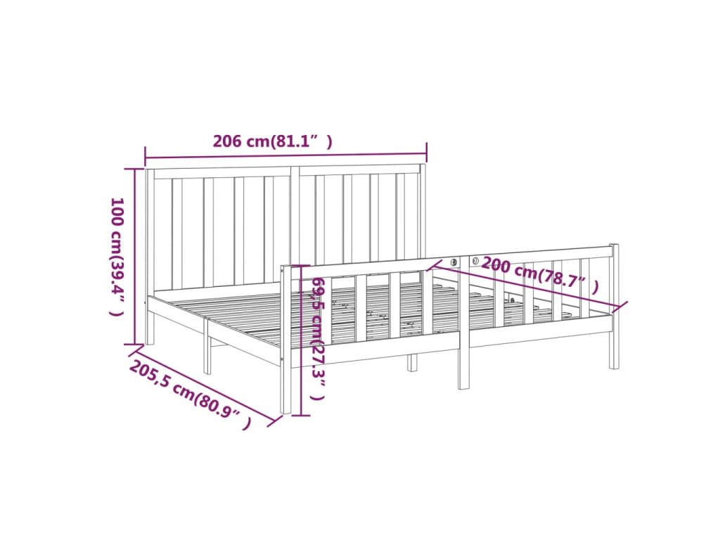 - Rozměry rámu postele: 205,5 x 206 x 69,5 cm (D x Š x V)