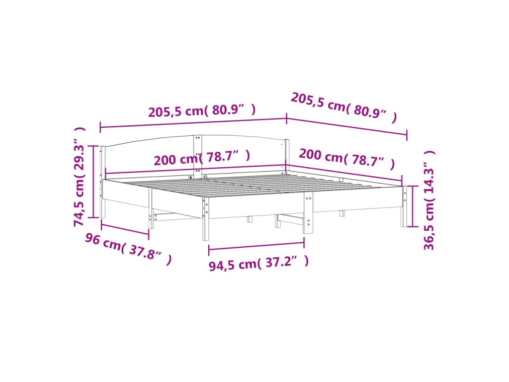 Postel bez matrace bílá 200 x 200 cm masivní borovice 3216189