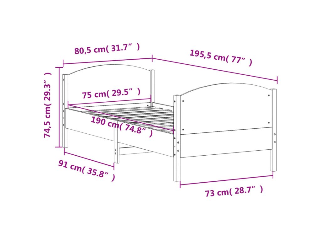 - Vhodné rozměry matrace: 75 x 190 cm (Š x D) (matrace není součástí balení)