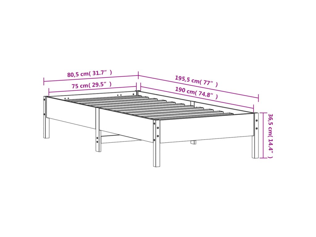 Postel bez matrace bílá 75 x 190 cm masivní borovice 842731