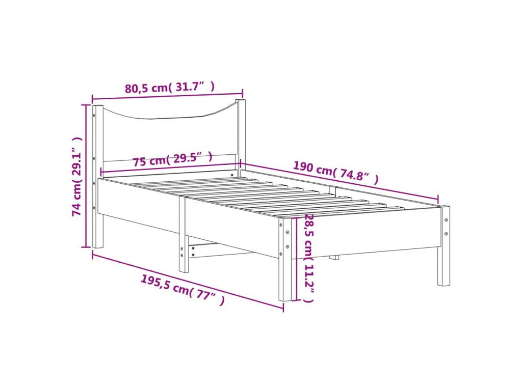 Postel bez matrace bílá 75 x 190 cm masivní borovice 844758