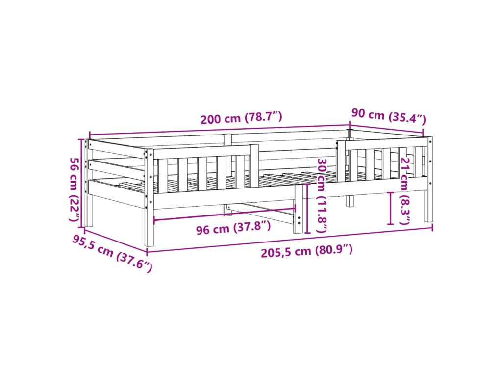 - Celkové rozměry: 205,5 x 95,5 x 56 cm (D x Š x V)
