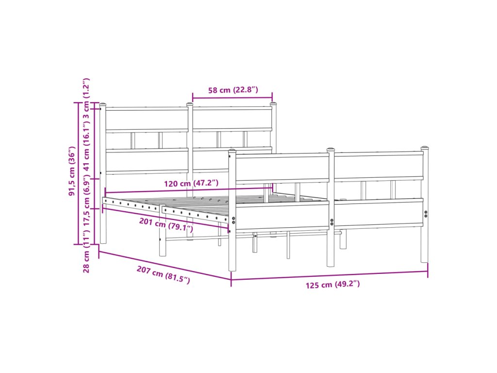 Postel bez matrace s hlavovým a nožním čelem 120 x 200 cm 4017167