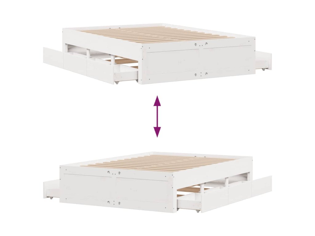 Postel bez matrace se zásuvkami bílá 150x200 cm masiv borovice 3308802