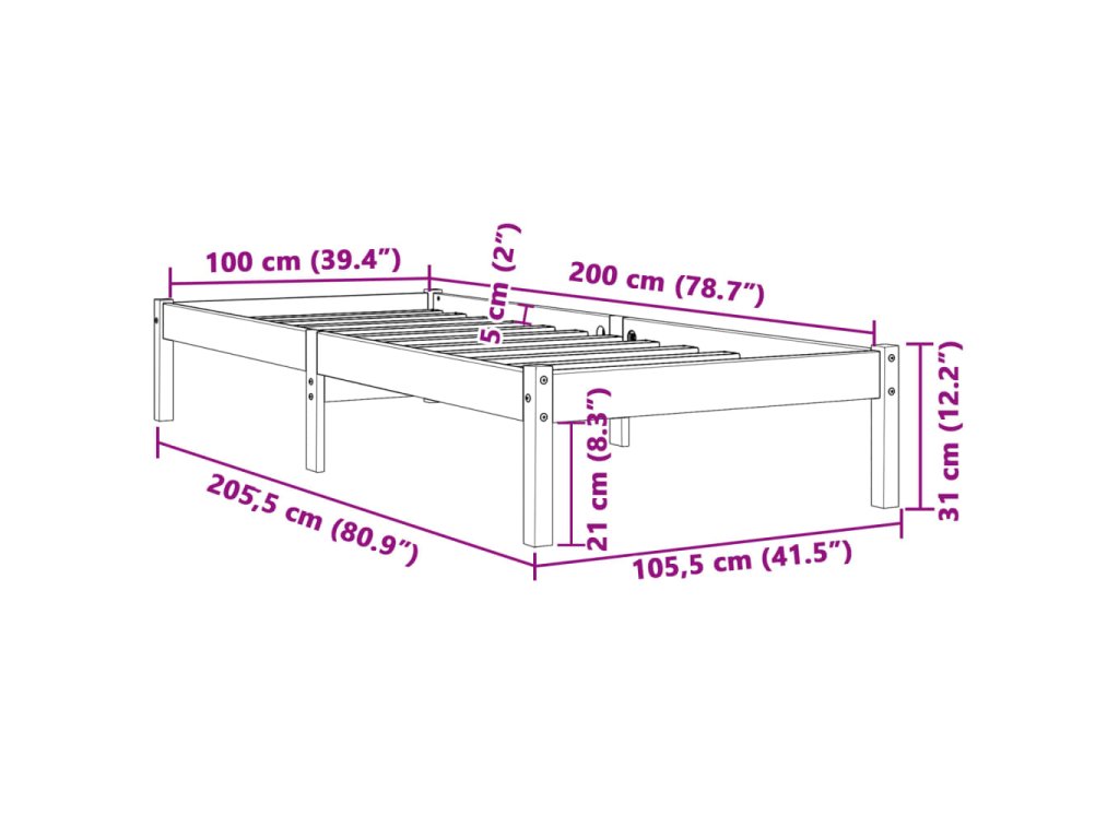 - Celkové rozměry: 205,5 x 105,5 x 31 cm (D x Š x V)