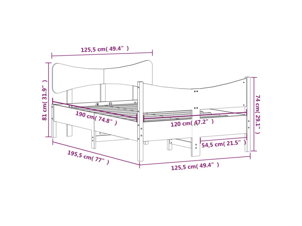 Postel bez matrace voskově hnědá 120 x 190 cm masivní borovice 3216401