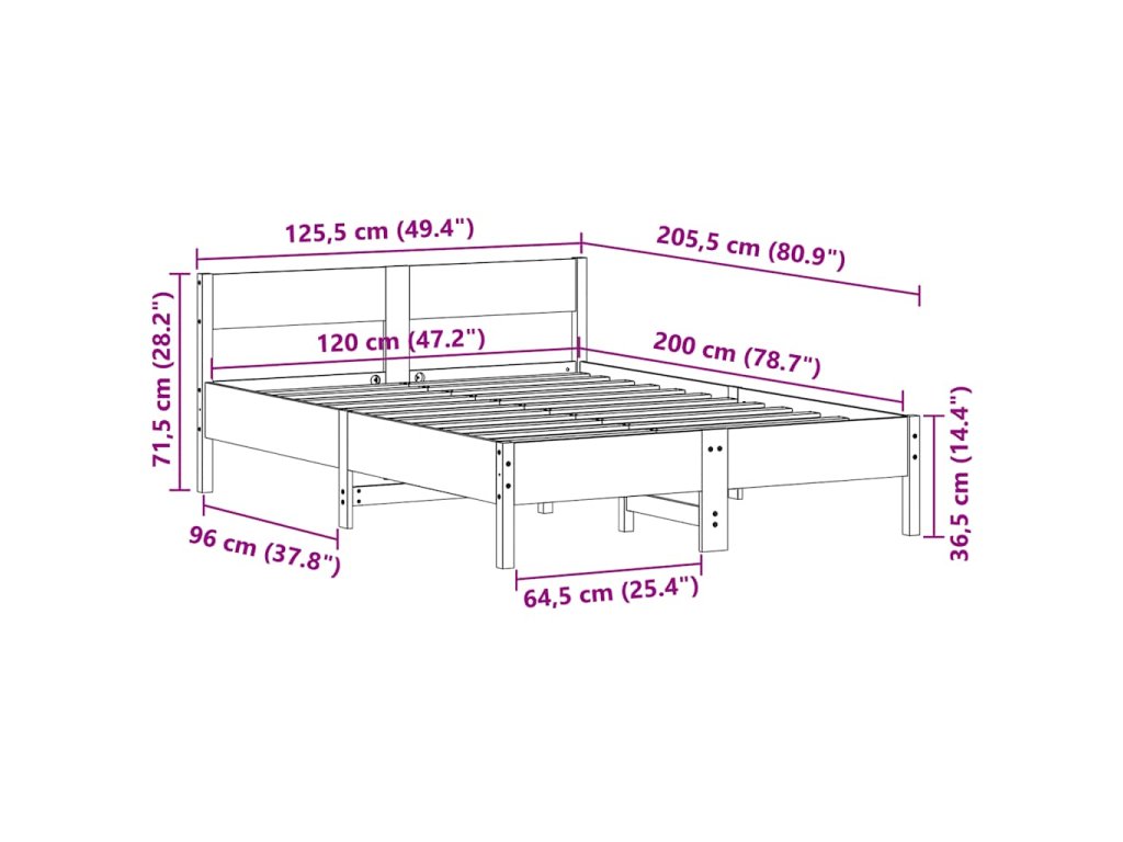 Postel bez matrace voskově hnědá 120 x 200 cm masivní borovice 842757
