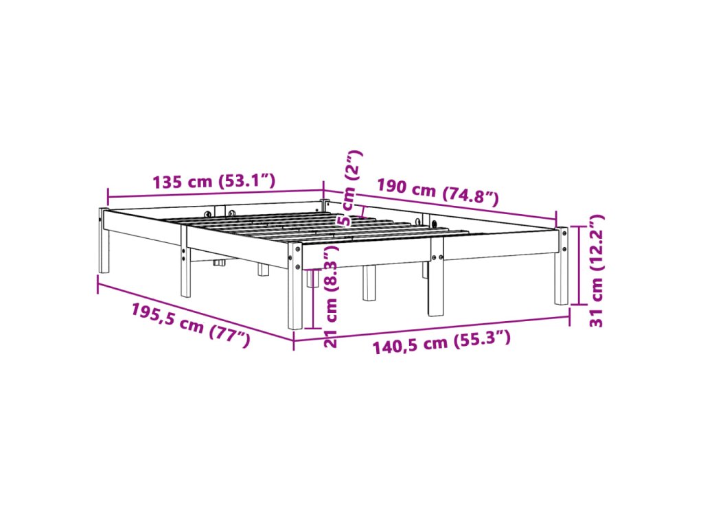 - Vhodné rozměry matrace: 135 x 190 cm (Š x D) (matrace není součástí balení)