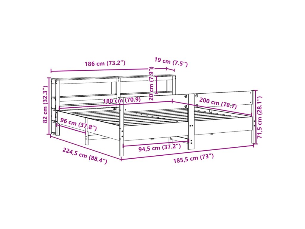 - Vhodné rozměry matrace: 180 x 200 cm (Š x D) (matrace není součástí balení)