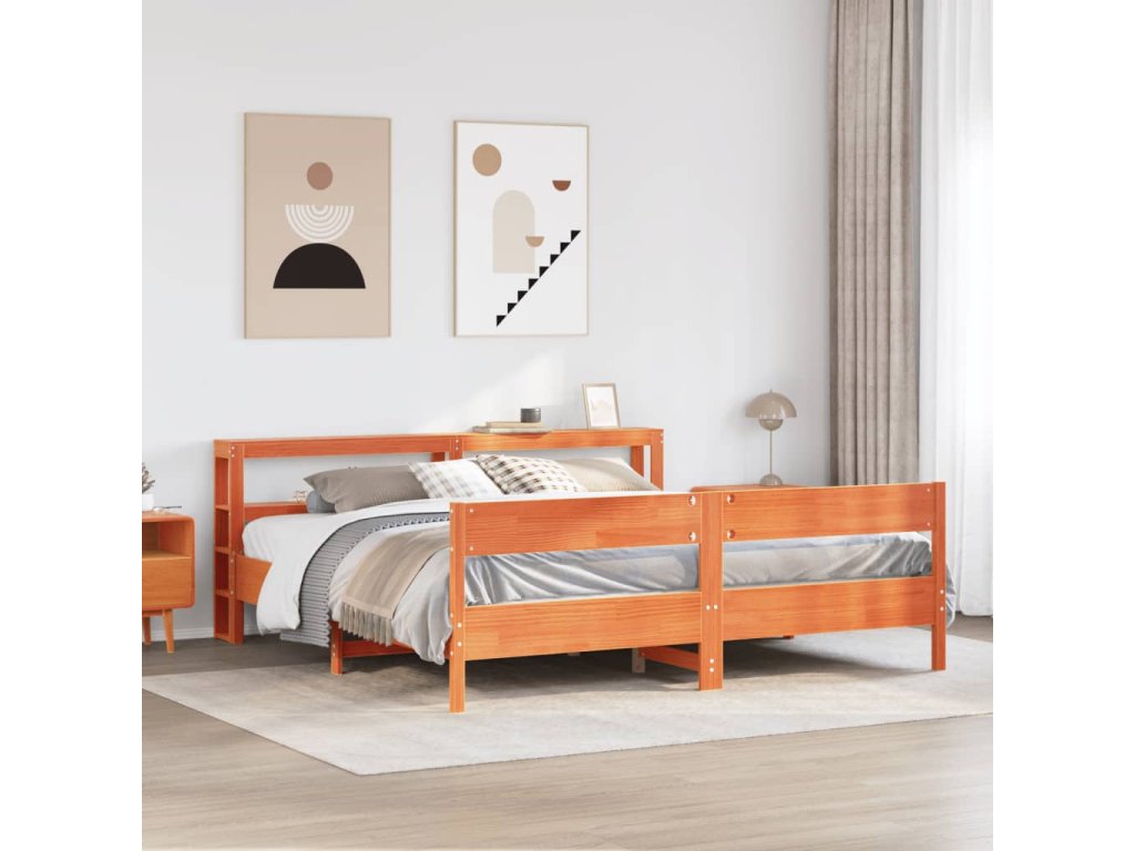 Postel bez matrace voskově hnědá 180 x 200 cm masivní borovice 3306179