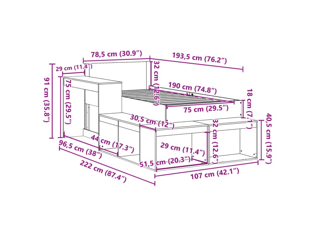- Rozměry: 193,5 x 78,5 x 91 cm (D x Š x V)