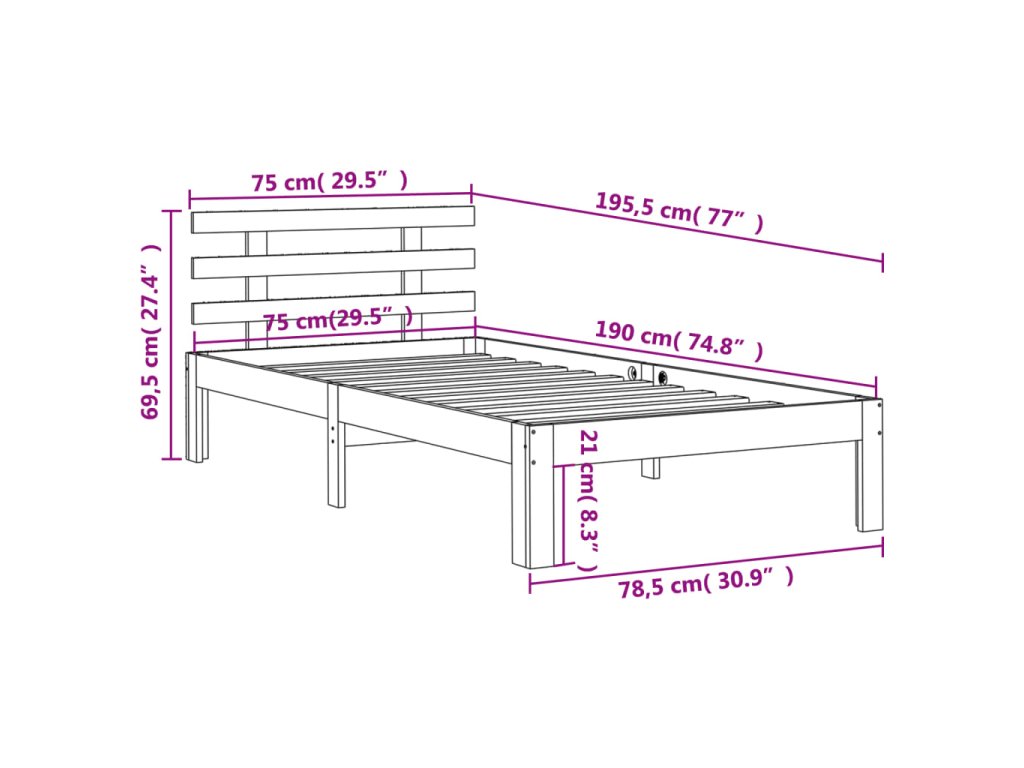 Postel bez matrace voskově hnědá 75 x 190 cm masivní borovice 844266