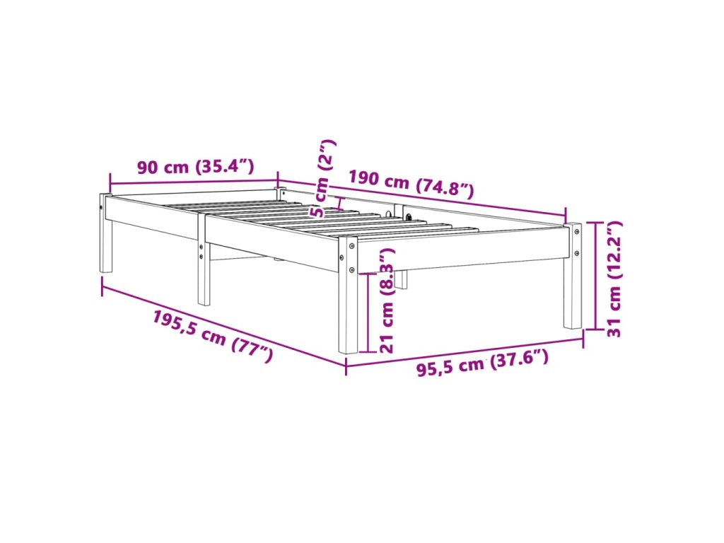 - Vhodné rozměry matrace: 90 x 190 cm (Š x D) (matrace není součástí balení)