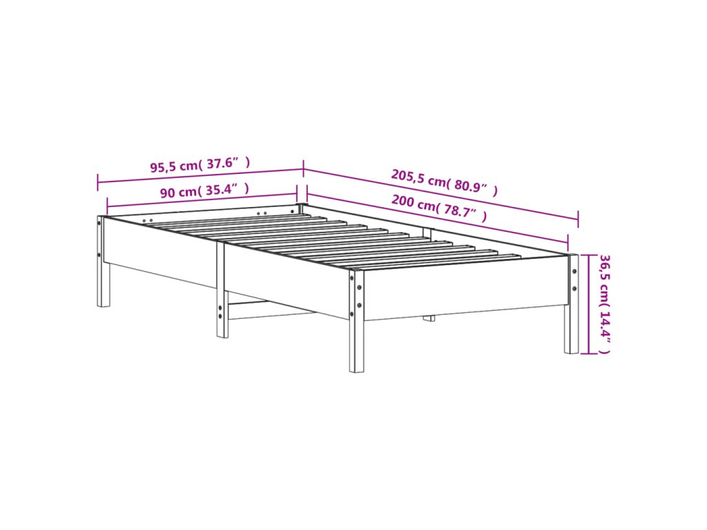 - Celkové rozměry: 205,5 x 95,5 x 36,5 cm (D x Š x V)