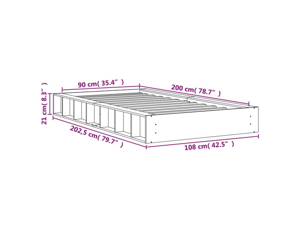 - Rozměry: 202,5 x 108 x 21 cm (D x Š x V)