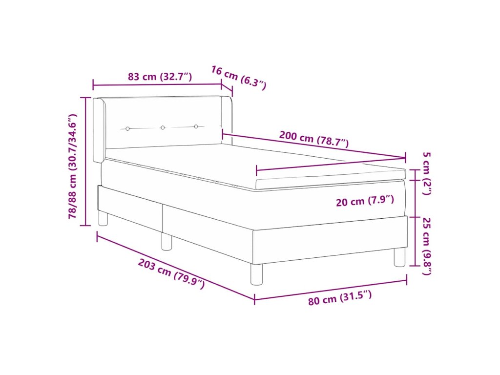 - Velikost matrace: Malé jednolůžko (80 cm x 200 cm nebo 31" x 79")
