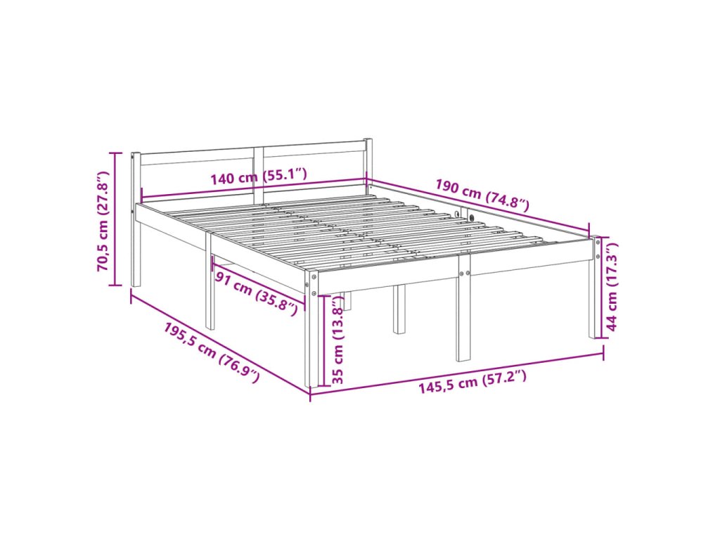 - Tento rám postele je vhodný pro matrace o rozměrech 140 x 190 cm.