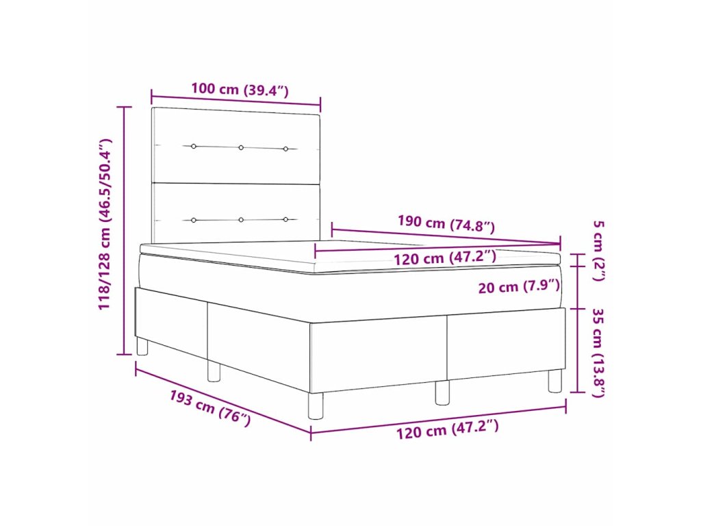 - Velikost matrace: Krátká malá dvojpostel (120 cm x 190 cm nebo 47" x 75")