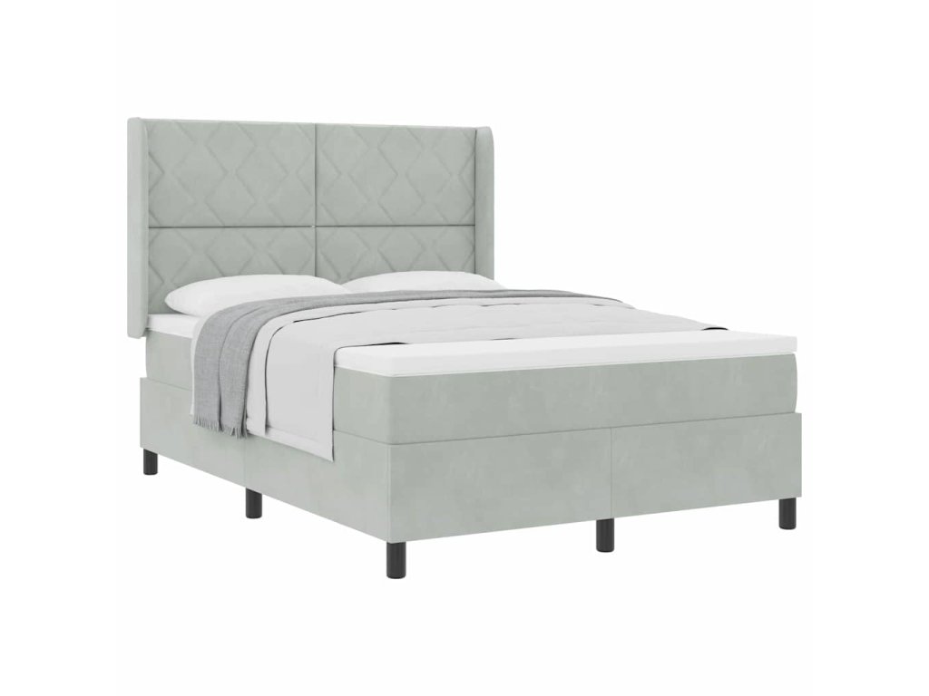 Postel s boxspringem s čelo Světle šedá 140 x 200 cm samet 3342062