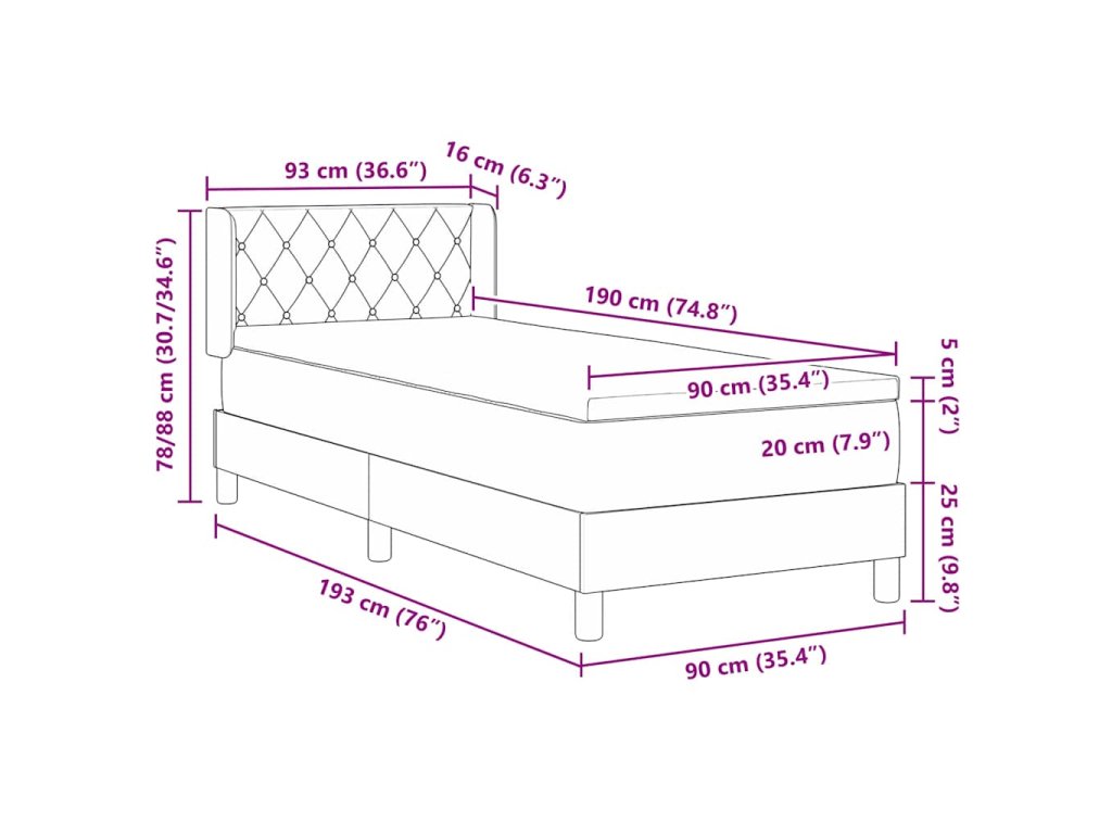 - Kompatibilní velikost matrace: Krátké jednolůžko (90 cm x 190 cm nebo 35" x 75")