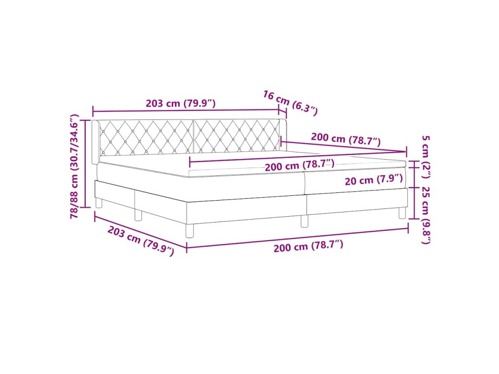 - 1 x Postelový rám: 203 x 80 x 25 cm (D x Š x V)