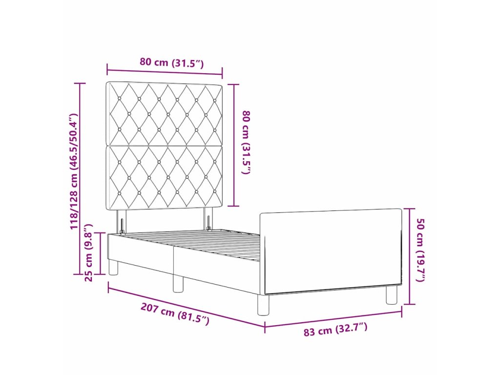 - Velikost matrace: Malé jednolůžko (80 cm x 200 cm nebo 31" x 79")