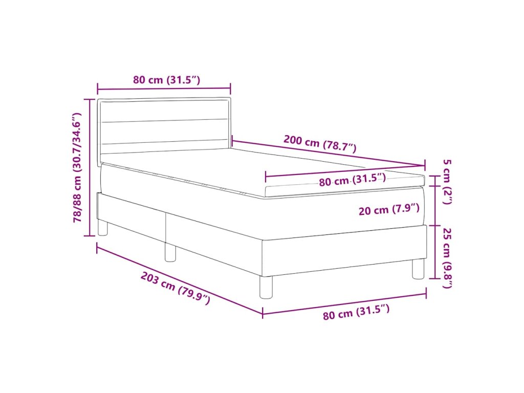 - Velikost matrace: Malé jednolůžko (80 cm x 200 cm nebo 31" x 79")