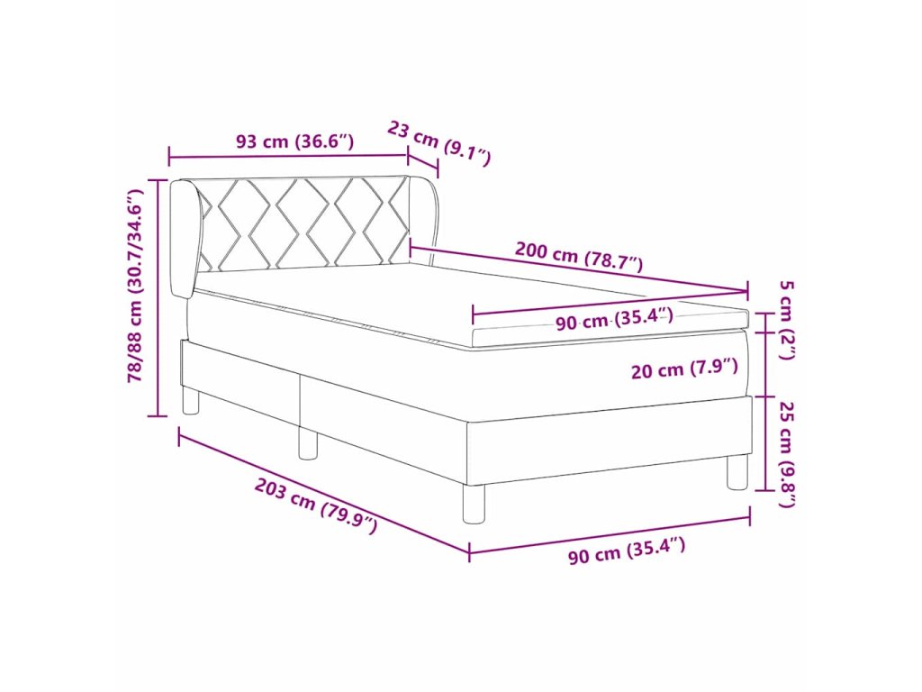 - Velikost matrace: Jednolůžko (90 cm x 200 cm nebo 35" x 79")