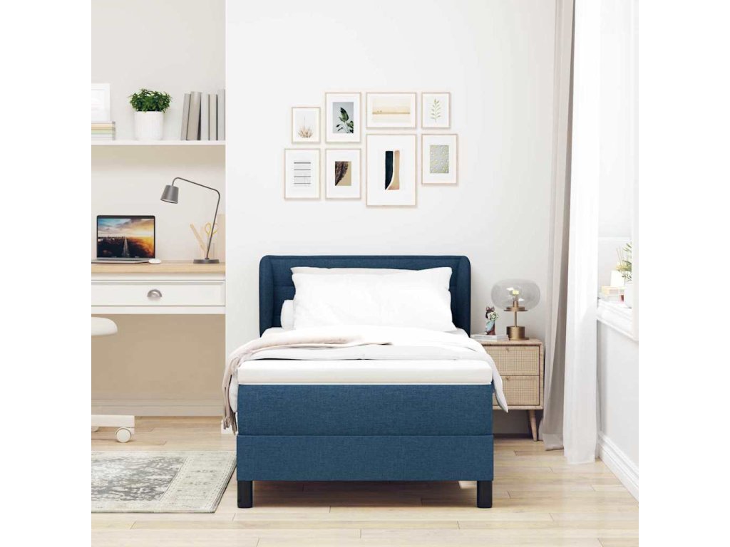 Postel s boxspringem s matrací s čelo Modrá 100 x 200 cm textil 3339953