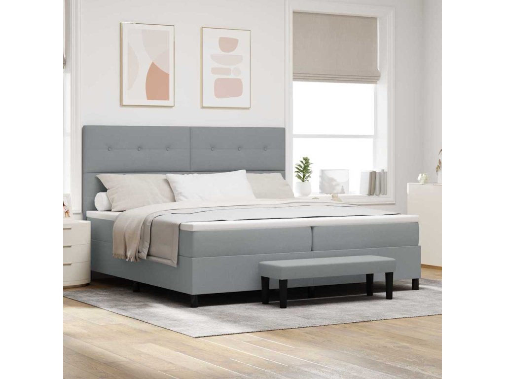 Postel s boxspringem s matrací s čelo Světle šedá 200 x 200 cm 3344093