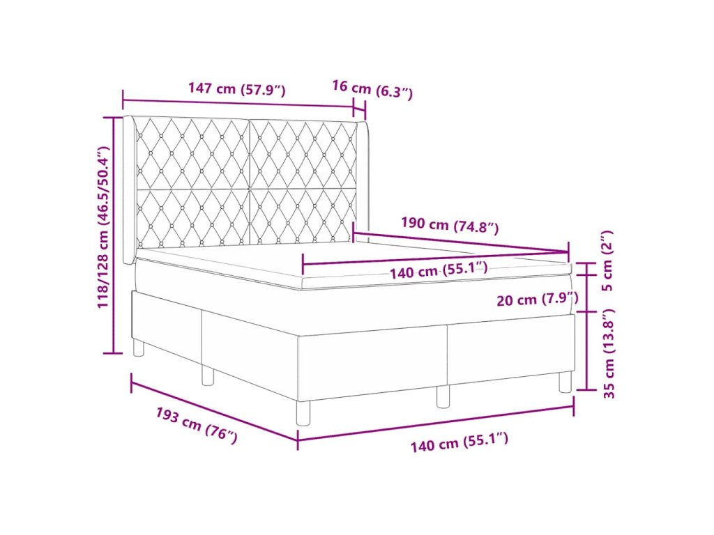 - Kompatibilní velikost matrace: Krátká dvojpostel (140 cm x 190 cm nebo 55" x 75")