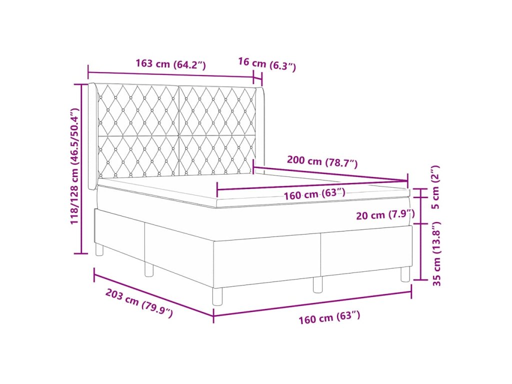 - Kompatibilní velikost matrace: Manželská postel king (160 cm x 200 cm nebo 63" x 79")
