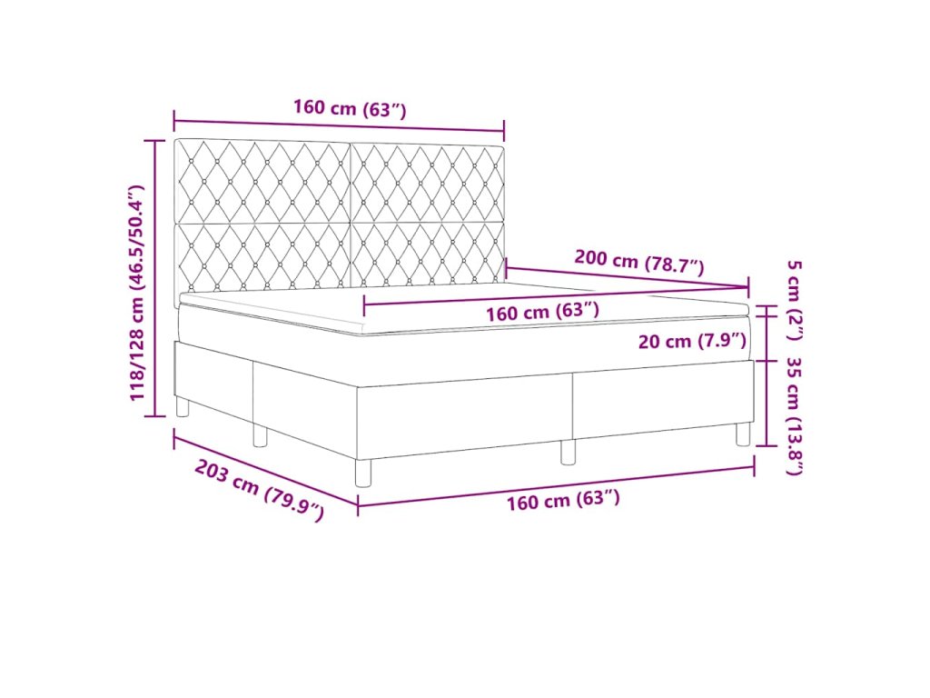 - Velikost matrace: Manželská postel king (160 cm x 200 cm nebo 63" x 79")