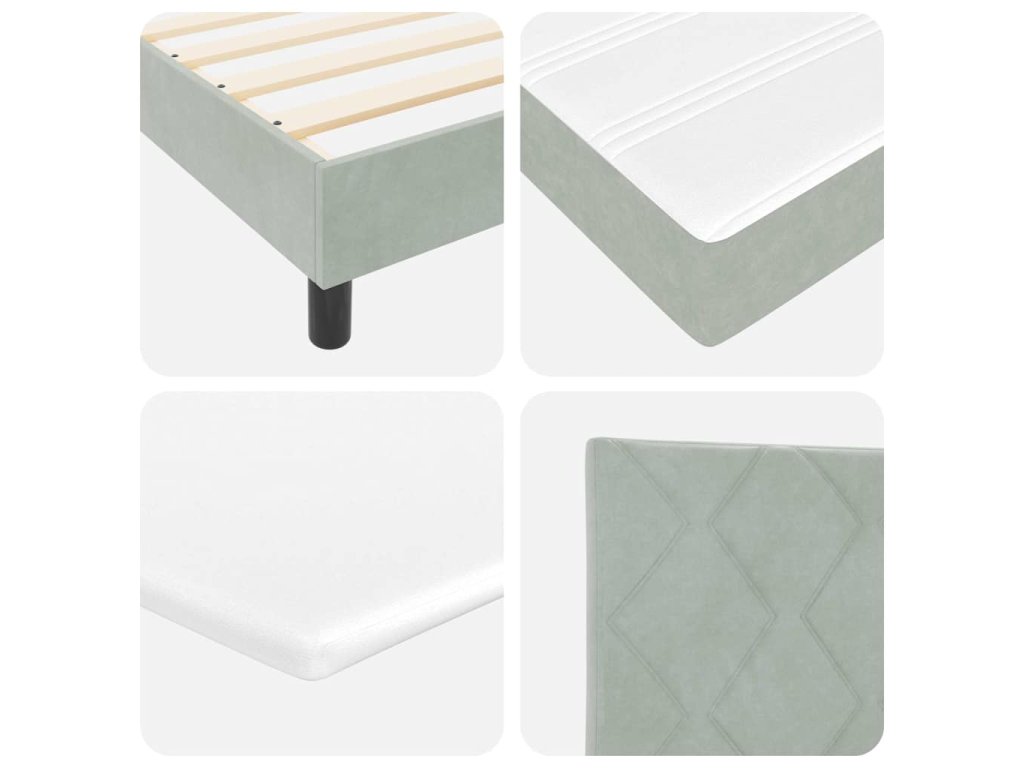 - Materiály: Box spring postel je vyrobena z kombinace sametu, pěny a inženýrského dřeva. Samet je příjemný a prodyšný, zatímco inženýrské dřevo poskytuje trvanlivou konstrukci. Užívejte si hedvábný pocit díky pěně, která zajišťuje pohodlí.