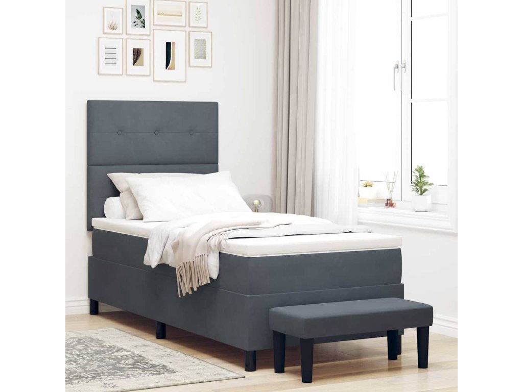 Postel s boxspringem s matrací Tmavě šedá 100 x 200 cm samet 3344493