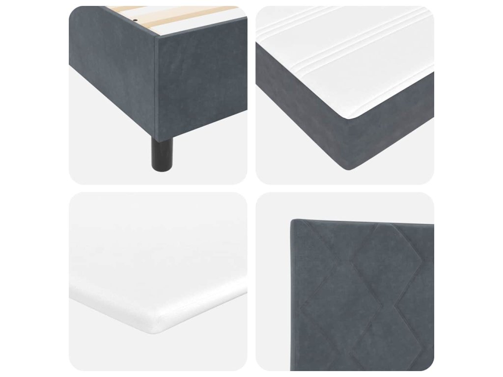 - Materiály: Postel s pružinami je z příjemného sametu a kvalitního borového dřeva. Působí skvěle na dotek a je dost pevná, aby vydržela. Bohatá látka dodává tvé ložnici eleganci.