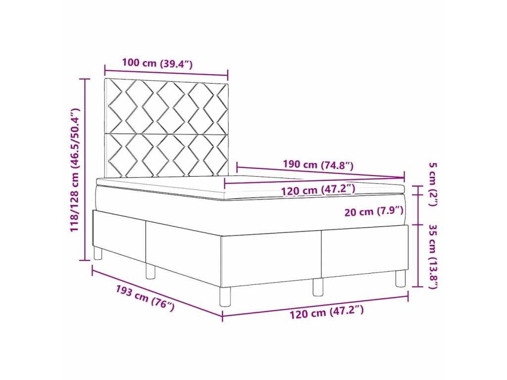 - Velikost matrace: Krátká malá dvojpostel (120 cm x 190 cm nebo 47" x 75")