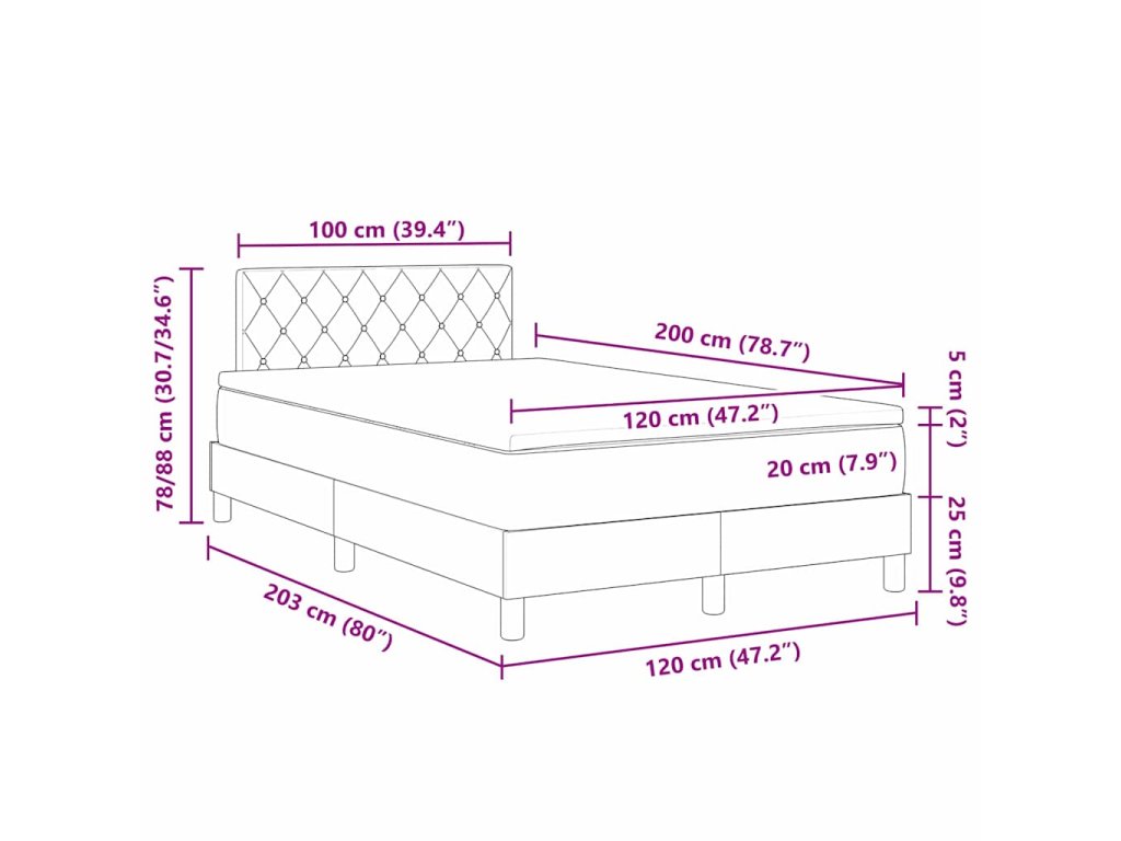 - Velikost matrace: Malá dvojpostel (120 cm x 200 cm nebo 47" x 79")