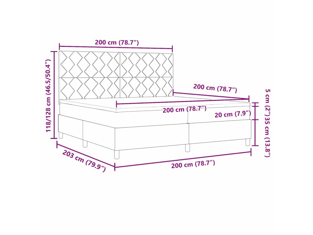 - Velikost matrace: Císařská postel (200 cm x 200 cm nebo 79" x 79")