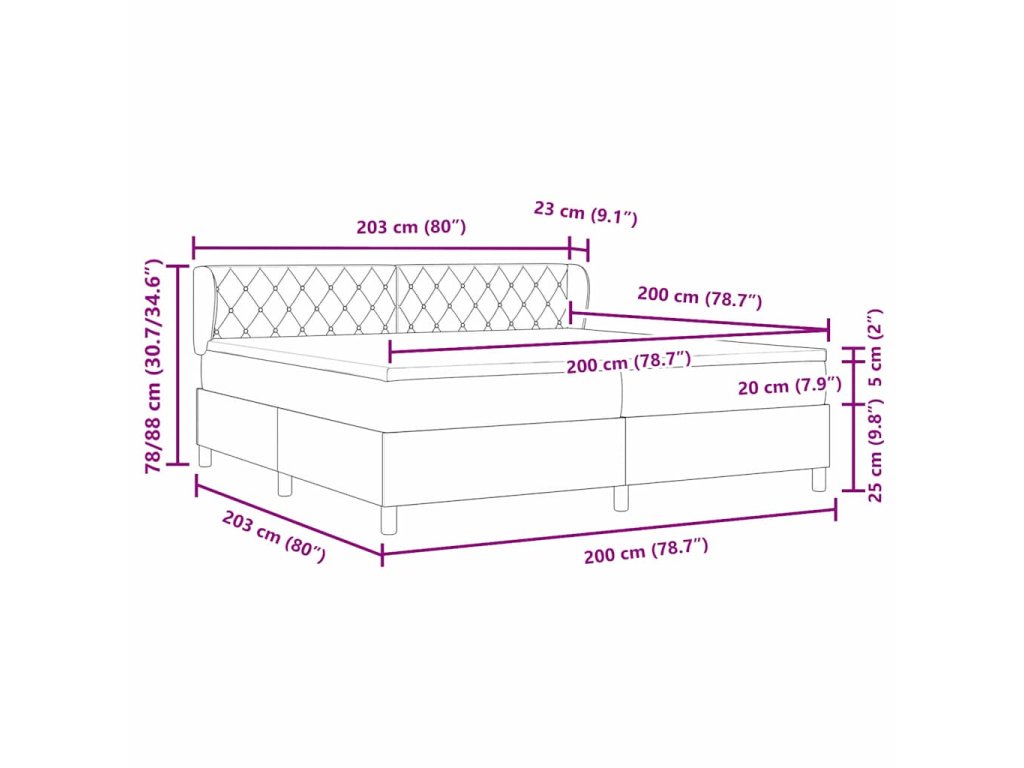 - Velikost matrace: Císařská postel (200 cm x 200 cm nebo 79" x 79")