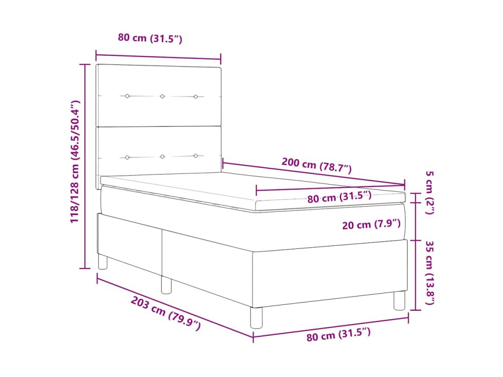 - Velikost matrace: Malé jednolůžko (80 cm x 200 cm nebo 31" x 79")