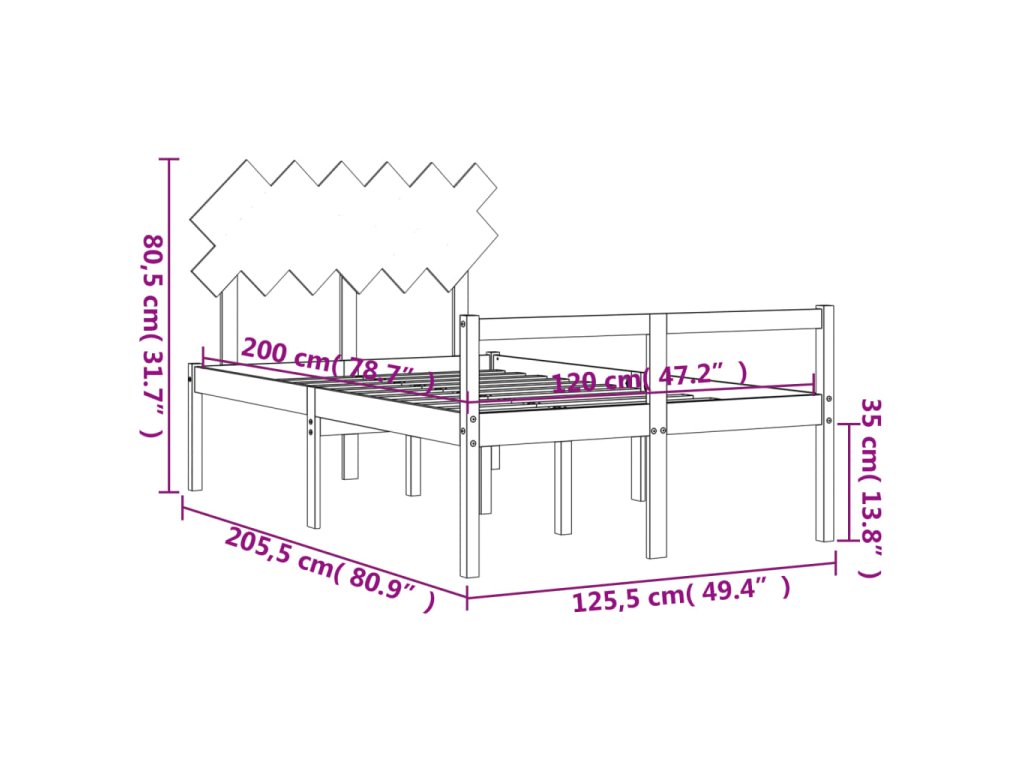 - Celkové rozměry postele: 205,5 x 125,5 x 80,5 cm (D x Š x V)