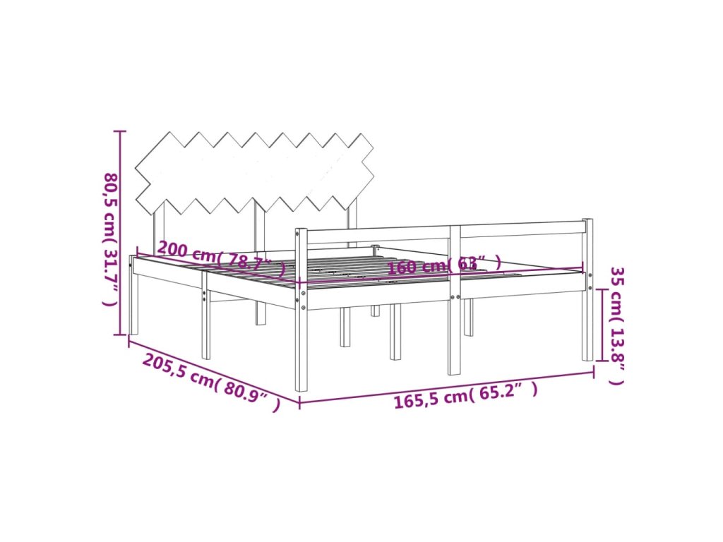 - Celkové rozměry postele: 205,5 x 165,5 x 80,5 cm (D x Š x V)