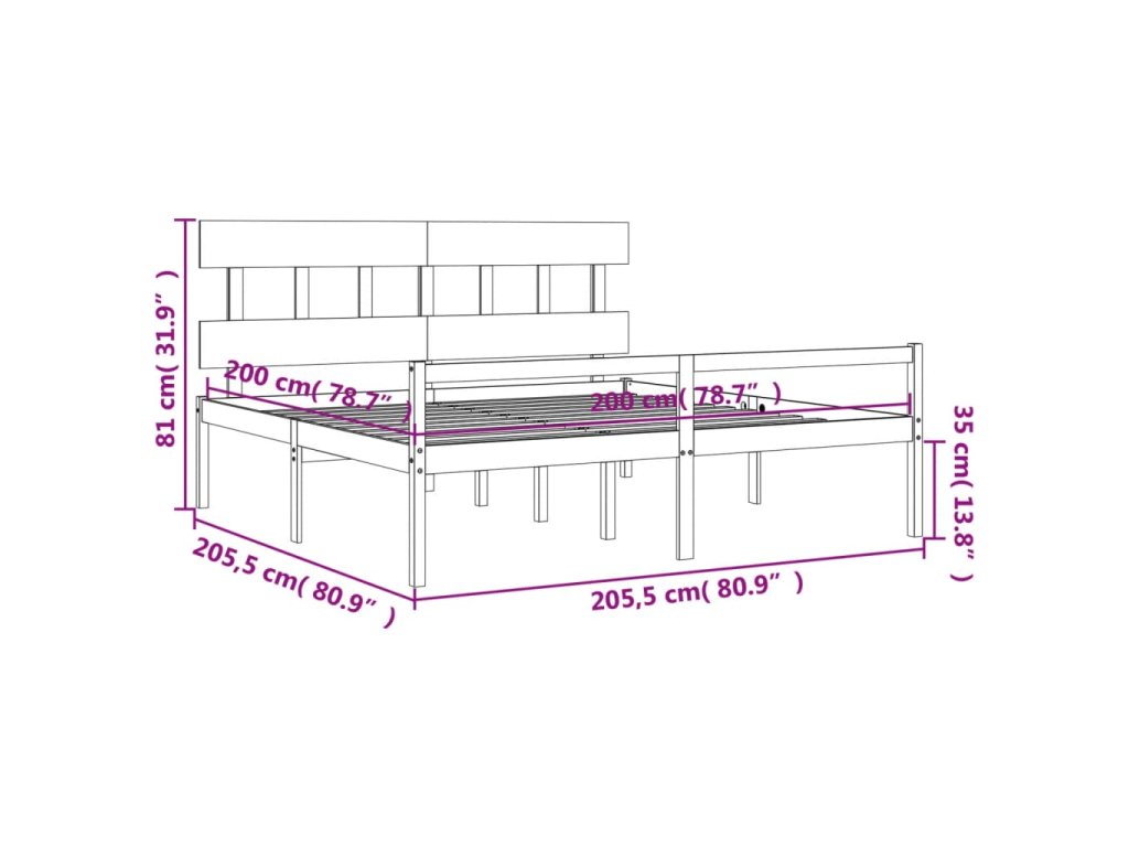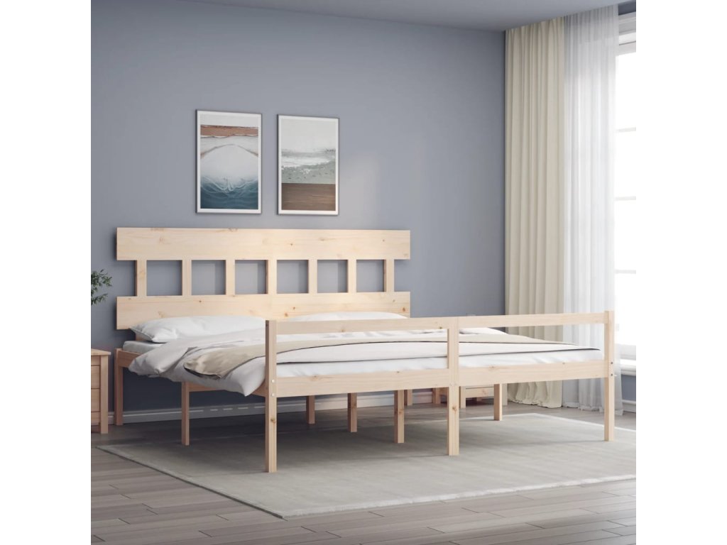 Postel s čelem pro seniory 200x200 cm masivní dřevo 3195436