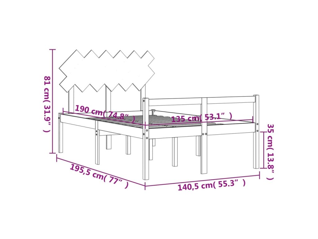 - Celkové rozměry postele: 195,5 x 140,5 x 81 cm (D x Š x V)