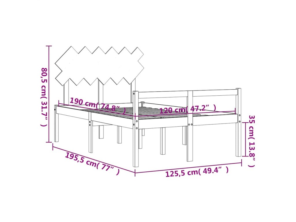 - Celkové rozměry postele: 195,5 x 125,5 x 80,5 cm (D x Š x V)