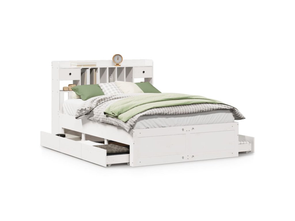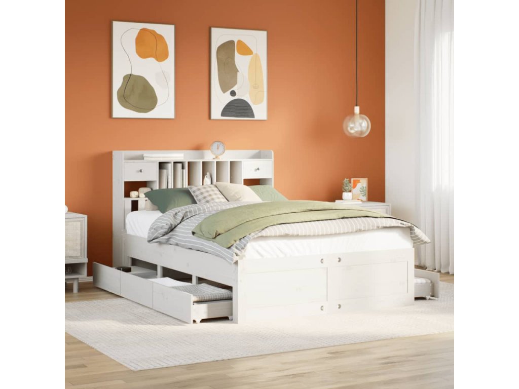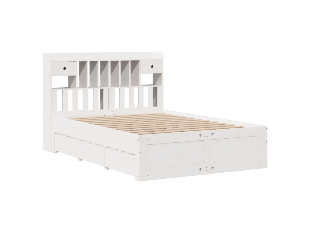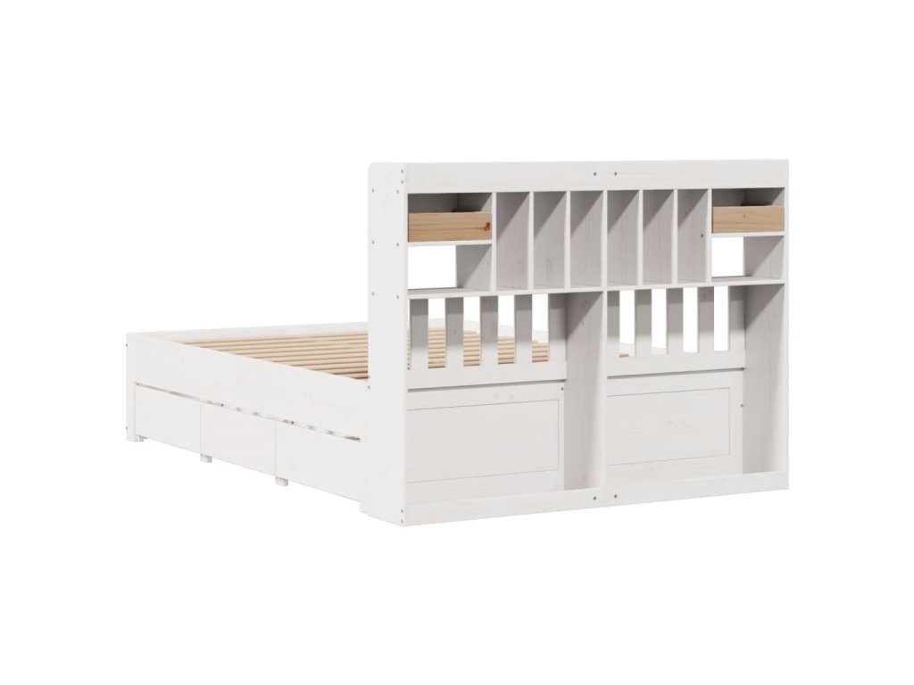 Postel s knihovnou bez matrace bílá 150x200 cm masivní borovice 3308958