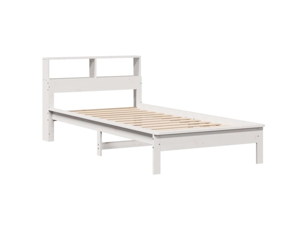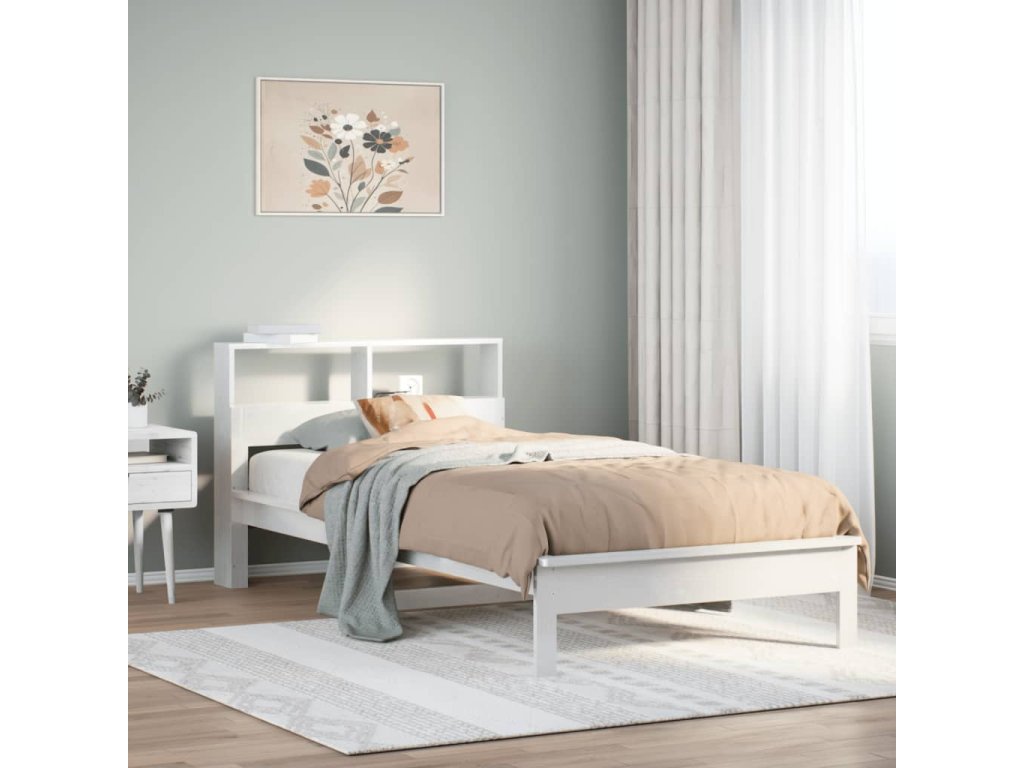 Postel s knihovnou bez matrace bílá 90x190 cm masivní borovice 855733