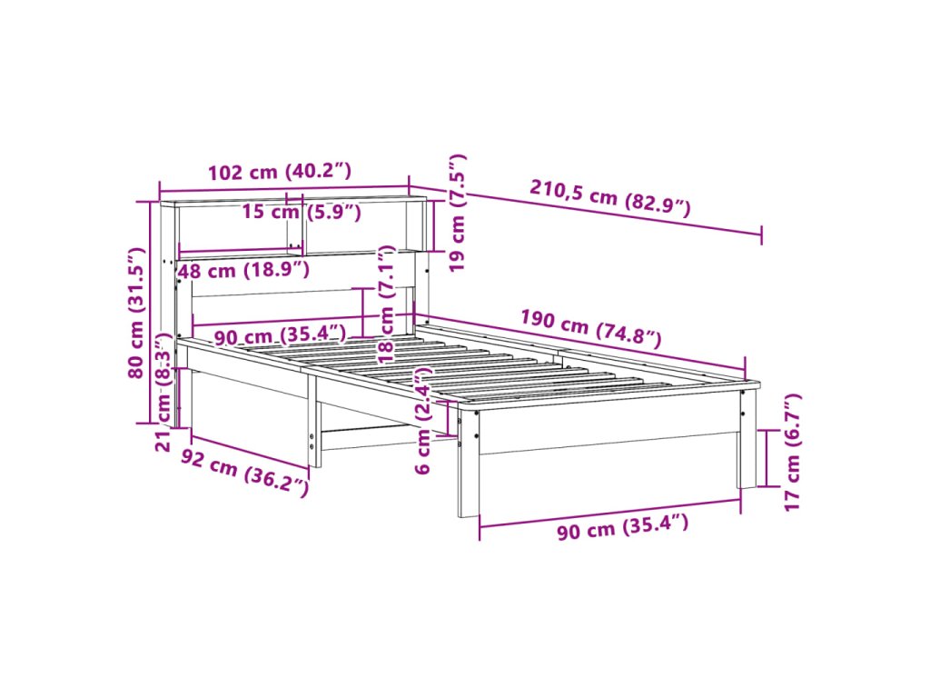 - Vhodné rozměry matrace: 90 x 190 cm (Š x D) (matrace není součástí balení)